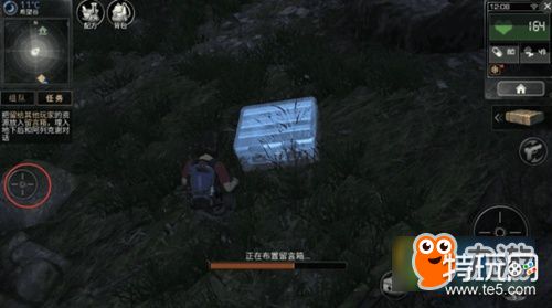 来到野外点击左侧的十字,在留言箱是蓝色的时候就可以埋放了。
