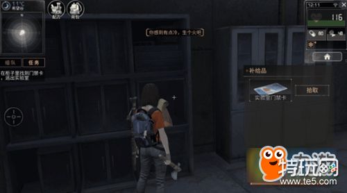 车祸之后我们来到一个陌生的地方,首先要拾取一些必备的物资。会看到很多发光的光圈,找到“生命检测设备”。点击拾取。
