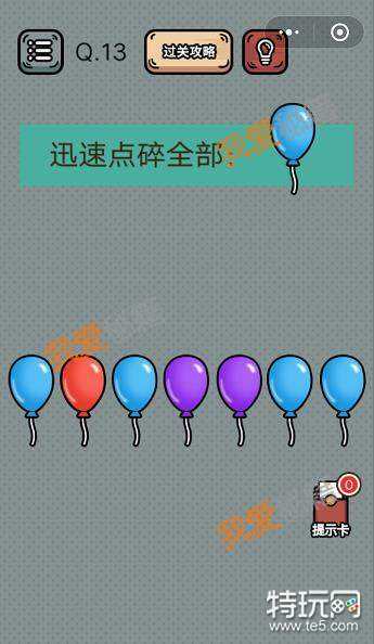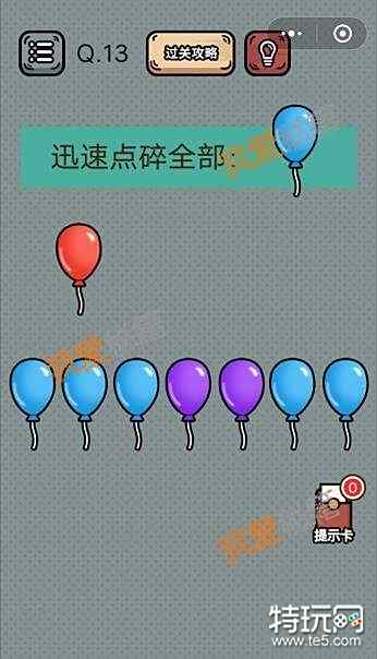 正确操作:将红色的气球移动开,就能看到蓝色气球,然后点击蓝色气球