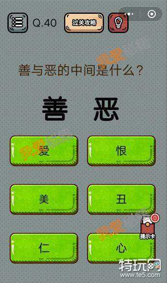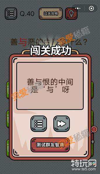 最强脑洞第40关的题目非常有意思,如果你们不注意就被这道题目坑了,善与恶的中间是什么呢?你们是不是点击所有的按钮都不正确呢?如果还没有通关就来看正确答案吧!