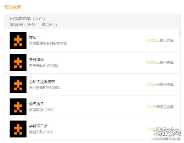 总共有71个成就可以选择,而这些成就的达成条件也写得比较清楚