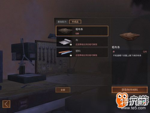 首先我们需要用到粗布条,这个布条默认在邮箱可以获得,但是如果不够的话可以到山上去寻找麻布,麻布可以合成粗布条。