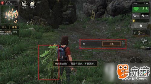 野外生存,野果或者一些植物资源是必不可少的。那么我们如何采集他们呢?首先我们在野外能看到一些可供采集的如:麻、野果等资源,靠近这些资源,我们可以看到采集的对话框。然后我们可以点采集来进行采集。