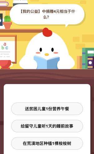 今天的问题是:【我的公益】中捐赠4元相当于什么?