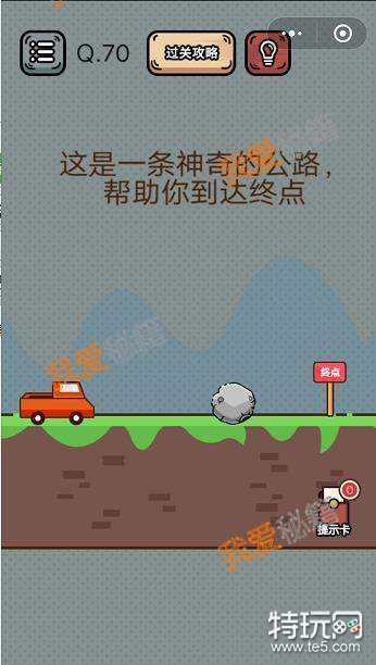最强脑洞游戏第70关和之前的关卡有点像啊,同样的小汽车,同样的石头,但是你们你们就是过不到终点,想要通关就来看小编的答案吧,大家可以不用浪费时间快速通关哦!