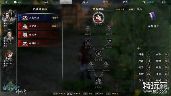 此外,游戏中武功招式的种类繁多,玩家可以使用匕首近身肉搏,也能够躲在远处暗箭伤人;能够利用轻功快速绕到敌人背后袭击,也能够运行独门内功与武功搭配出更强的威力、或是不同的招式互补而发挥出意想不到的效果。多元的技能与感悟搭配,不仅强化了角色的特色,也提升了战斗的策略性。