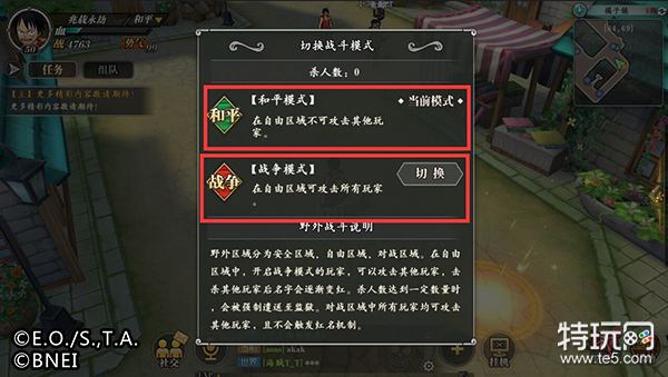 l玩家可以手动选择自己的状态:战争状态、和平状态。