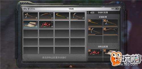 进入快捷栏配置后我们可以看到在下方的消耗品配置内是没有绷带的。那么我们就可以把绷带添加到快捷栏。