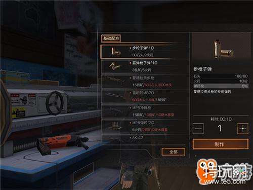 制作步枪等高级点高级道具同样需要先按照配方准备好材料才行,并且需要配合相应打造台才行,如下以制作步枪为例为大伙做个简单展示: