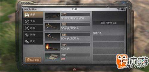 斧头、搞头、火把及绷带等按配方开采都所需资源后就可以直接进行打造,下面小版以新手教程的砍刀为例为大家做个简单展示: