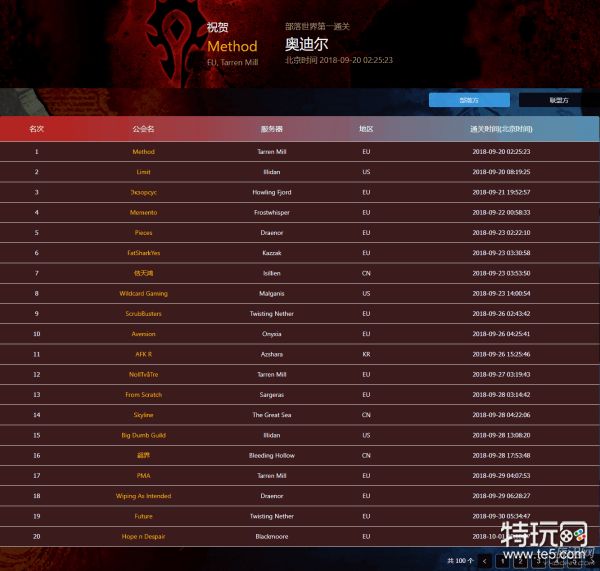 从9月20日第一个进入部落名人堂,到10月15日最后一个公会,不到一个月的时间,部落名人堂名额已满,其中中国公会有18家(包含台服1家)。而联盟从9月24日诞生第一位名人堂公会后,仅有12个公会进入了名人堂,中国公会只有2家。更多详细的排名可以进入我们官网的“进度排行榜”→“团队副本名人堂”查看。
