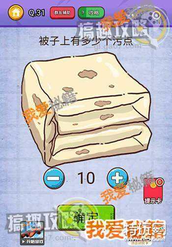 《燃烧吧我的大脑》游戏第31-35关的问题分别是:被子上有多少个污点、哪块石头更重、柱子是方的还是圆的?、老王刚用过哪个灯泡、我国牛奶主要产自哪里?。下面我爱秘籍小编给大家一一分享答案。