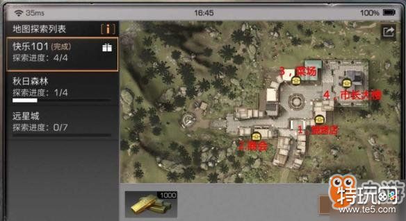除了每找到一个箱子的奖励以后,不对劲的彩虹天堂任务完成后,打开探索功能,就可以领取1000金条的奖励