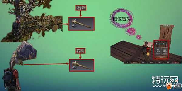 3、制作、补充弹药、修建房屋都根据提示来完成,房屋门输入4位密码。