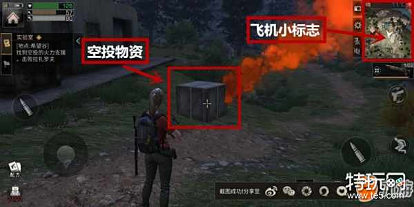 在电台的后方,步行几步即可看到,或者看右上角地图,有个飞机的标志,就是空投物资所在地。