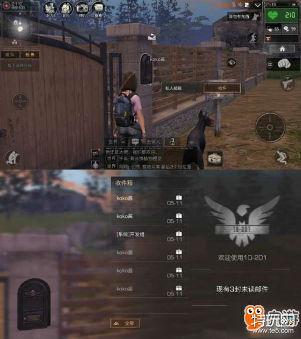 庄园在地图上的标志是一幢小房屋,来到庄园以后,庄园门口会有属于我们的邮箱,邮箱里存放着开发组发放的福利与我们从其他地区邮寄过来的包裹,进入庄园之前记得先在外面收取一下。
