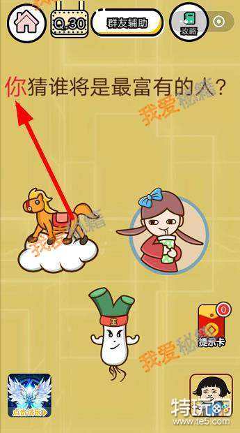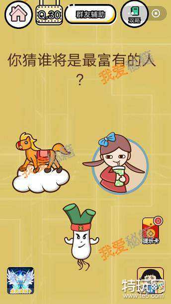 智力达人第30关图片中有马、小女孩和大葱,问谁将是最富有的人?点击图片中的哪一个都不正确,正确操作是什么呢?小编已经完成第30关的通关啦,正确操作方法分享给大家!