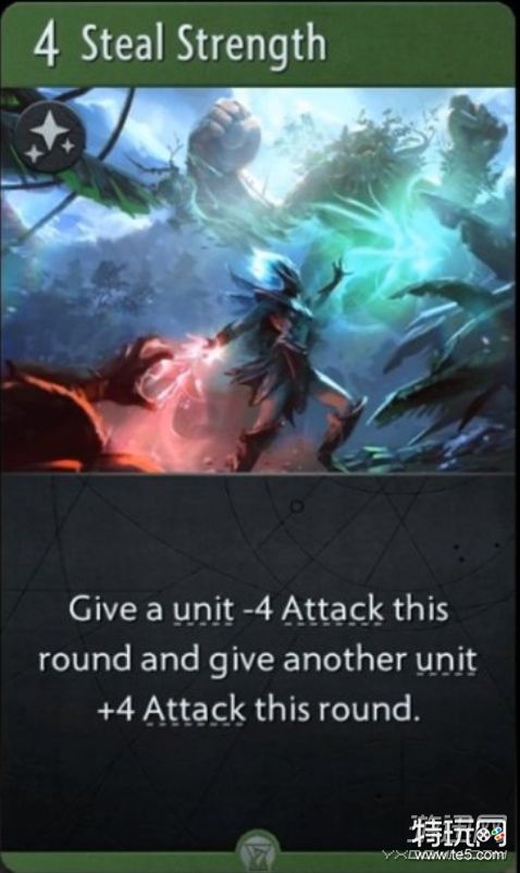 窃取力量(Steal Strength):在这个回合,使1个单位-4攻击,并使另1个单位+4攻击。