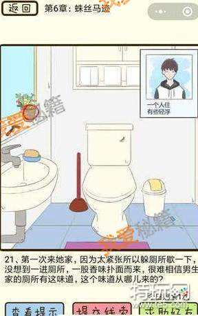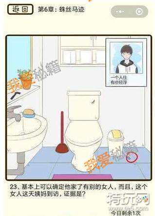 《疯狂女神探》第六章是——“蛛丝马迹”,这款游戏的背景故事是一对小情侣,男人扮演的角色是出轨,而女人是找线索,下面我爱秘籍小编给大家分享一下攻略。