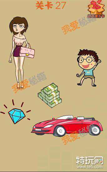 疯狂脑洞大开2第27关图片中都是小编喜欢的,美女、票子、车子、钻石,这已经是人生巅峰了,我们怎么帮助老王走上人生巅峰呢?还没有完成通关的小伙伴们就来看正确操作方法吧!