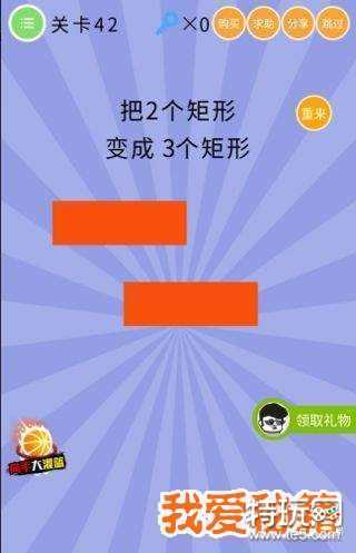 微信小游戏《开心脑力挑战》第42关的问题是:“把2个矩形变成3个矩形”,小编之前玩过一个类似的烧脑游戏,是把六个宝石变成七个宝石,答案是类似的,下面我爱秘籍小编给大家分享。