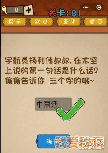 最强大脑大乱斗81关【杨利伟叔叔】过关答案
