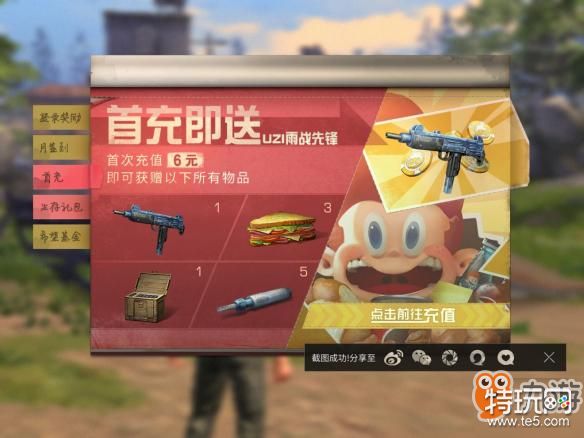 游戏初期的氪金至关重要,6元的首充可以说是这个游戏的入门要求,首充里,你会得到即使在前中期,都十分宝贵的两个道具:UZI和火药箱子(没有酒柜了!)。