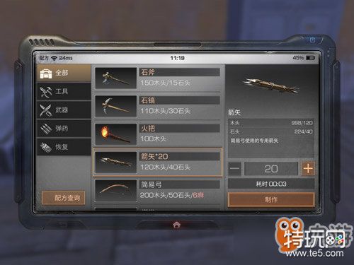 总结:箭矢是属于简易弓专用的弹药,注意制作材料是石头和木头。