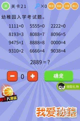 “2889=?幼稚园入学考试”是微信小游戏智商大爆炸21关问题,大家需要注意的一点就是这个是“幼稚园”的题目。所以呢,就不需要把题目给复杂化,下面我爱秘籍小编给大家分享攻略。 智商大爆炸21关攻略