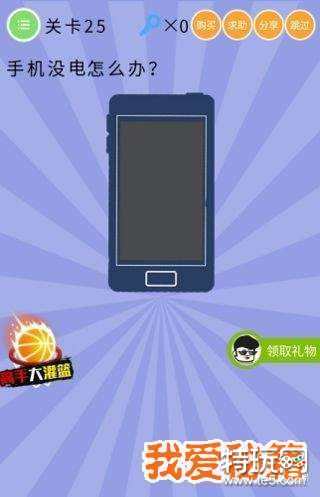 “手机没电怎么办?”是微信小游戏智商大爆炸25关问题,可能很多的玩家看到这个题目都有一个很直接的想法,那就是充电不就好了,可是怎么充电呢,下面我爱秘籍小编给大家分享一下吧。 智商大爆炸25关攻略