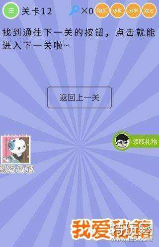 “找到通往下一关的按钮,点击就能进入下一关啦”是微信小游戏智商大爆炸12关问题。可是呢,给出的按钮是只有一个“返回上一关”,下一关的按钮在哪里呢?下面我爱秘籍小编给大家分享一下吧。