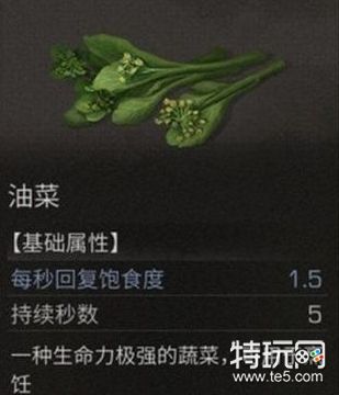 油菜是一种生命力极强的蔬菜,可用于烹饪。油菜可以在秋日森林通过采集获得。一般河边附近容易发现。