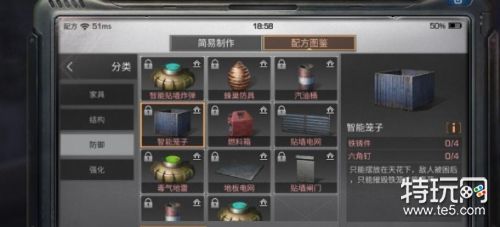 首先在【配方研究台】中级合成中获得配方,然后去【建材加工台】进行防御制作即可!