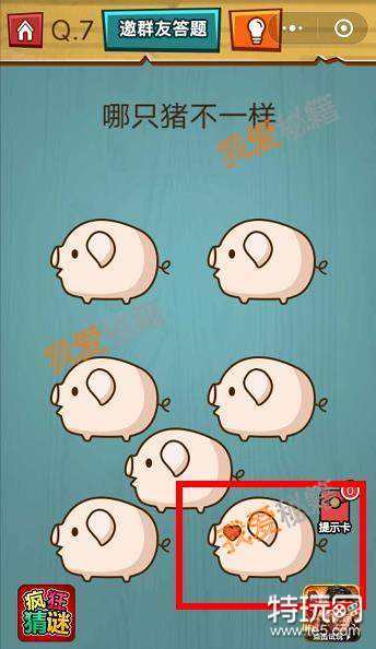正确答案:移动开最后一只猪,然后就能看到下面有一只桃心猪!