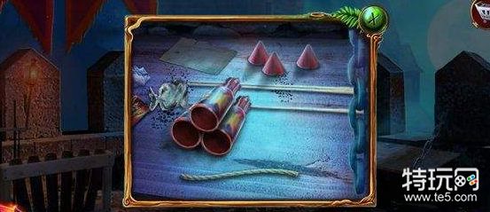 将烟花和火柴交给小动物,离开二楼。在庭院点右侧木屋触发寻物。每个物品下面有个碎片,最后得到电池。