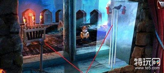 前进三步至走廊触发动画。点房门还有一个动画。点窗台,用钻石戒指切开玻璃,得到烟花棒。左侧架子放上手电筒发现特么没电。点右侧橱柜,放上风扇。用胶带粘好电线,点击吹风,得到导火线。