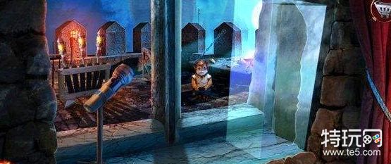 后退一步到地牢。点左侧杂物触发本游戏最眼瞎寻物。得到千斤顶。点笼子,没有钥匙直接点开,用绑在棍子上的磁铁吸出手枪按钮1。