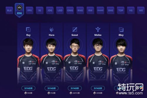 参加S8全球总决赛的三支队伍选手得票情况如下: