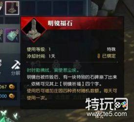 明镜福石效果:随机增加4种庄园资材,使用CD24小时,永久存在