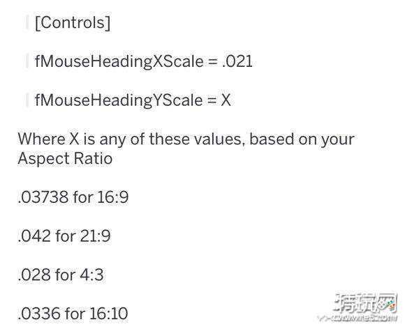 辐射初始的水平鼠标灵敏度要比垂直灵敏度高一些,然后这是很奇怪的(因为大部分游戏两个都是一样的)所以让水平和垂直变为1:1的方法如下,根据你的显示器长宽比: