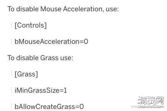 关闭鼠标加速和减少草地数量(提高帧数),直接加到Custom里: