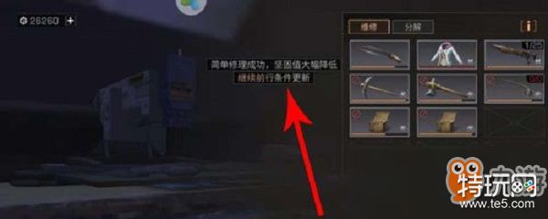 当使用的装备因耐久度降低至0而无法再去使用时,回到家中找到家用修理台。