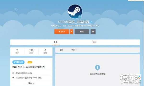 Steam国服官方微博日前已悄然开通,帐号为“STEAM国服_完美世界”,简介为:完美世界征奇(上海)多媒体科技有限公司STEAM国服官方账号。目前已获蓝V认证,但暂时没有发布任何内容。
