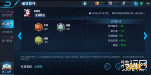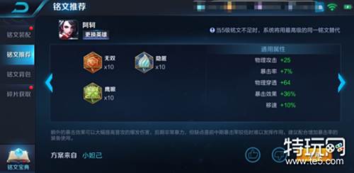 配备阿轲铭文,不知道应该用隐匿还是狩猎?没关系!在铭文推荐中也能直接查看大神的铭文方案,还有搭配解读,一键配置后就可以轻松赶赴战场!