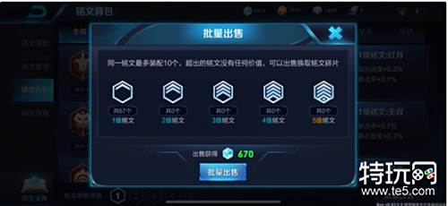 2. 出售铭文时,将只允许出售那些超过了10个的同名铭文,并且只能优先出售低等级的铭文。(例如玩家拥有5个1级【无双】和8个5级【无双】,那么只能出售3个1级【无双】,其他的不允许出售)