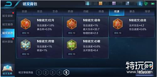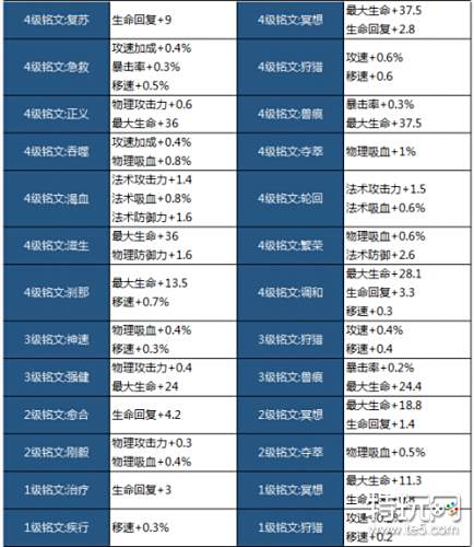 我们以5级铭文为基准,调整了1~4级铭文的属性,使得每一个5级铭文都有属性相同、数值不同的1~4级铭文相对应。