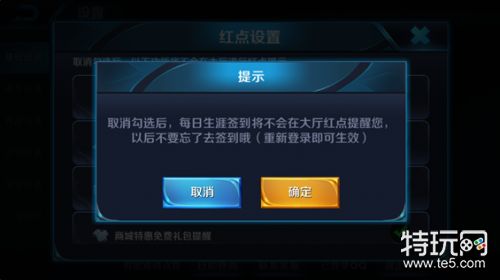 2. 使用注意:可以进行手动选择不在大厅进行红点提示的功能,需要重新登录后才可以生效。取消提醒后,用户在进入每个相应模块后仍会进行红点提示。