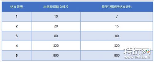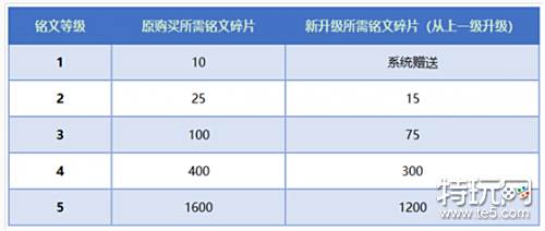 新版铭文系统中每升一级铭文所需铭文碎片数量如下表所示: