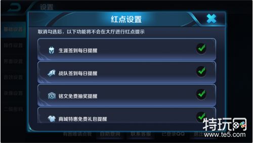 例如:手动取消勾选“战队签到每日提醒”后,将在大厅的【战队】入口不进行签到行为的红点引导,但用户手动进入【战队】后,仍在战队签到处进行红点展示