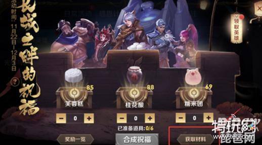 2、使用祈福道具合成英雄祝福,6个道具可以合成1个祝福并获得奖励。